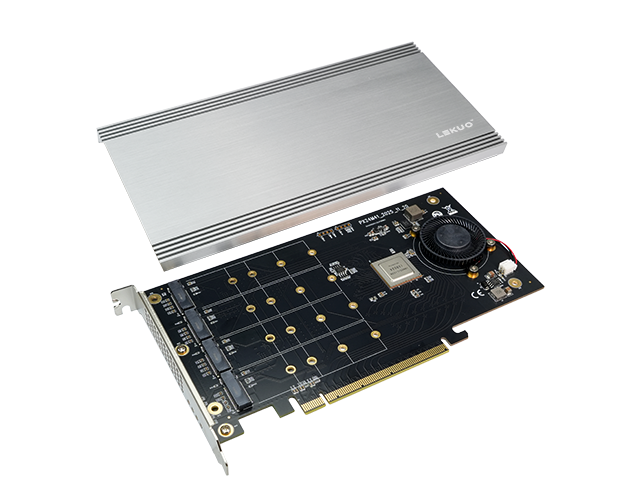 This high-performance PCle 4.0 xa expansion card (requires a PCle x16 physical slot on the motherboard) provides four M.2 NVMe slots via PC le 4.0 xa connectivity. Featuring PCle Switch architecture, it enables independent recognition and concurrent access for four NVMe SSDs without motherboard channel bifurcation. All SSDs share approximately 16 GB/s total bandwidth, making it ideal for video ed巾ng, high-performance computing, and multi-drive storage acceleration